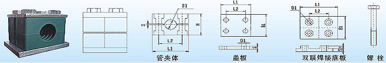 管夹体 | 盖板 | 双联焊接底板 | 螺栓 | |||||||||||||