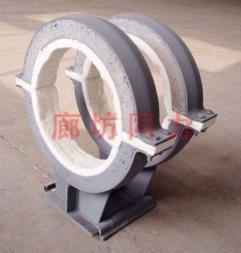 隔热华体育网站适用于高温蒸汽管道的支撑部位,配件包括底座、管夹、隔热层。隔热材料一般选用蛭石、硅酸钙、浇筑复合材料等。浇筑复合材料是一种硬质隔热保温材料,主要由陶粒、珍珠岩、铁黑粉、氧化镁通过粘结剂混合后固化而成。陶粒和珍珠岩能起到较好的隔热保温作用;铁黑粉与陶粒珍珠岩氧化镁混合后凝结在一起,能提高抗压强度及硬度;加入硅酸铝后能提高粘结牢度,进一步提高强度和硬度,降低导热系数。产品具有抗压强度高、热传导率低、吸水率低的特点,适应既要低导热系数,又要高抗压系数的场合。