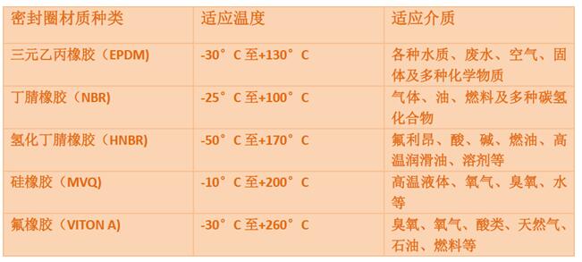 橡胶材质:三元乙丙橡胶、硅胶、氟胶、丁腈橡胶等。