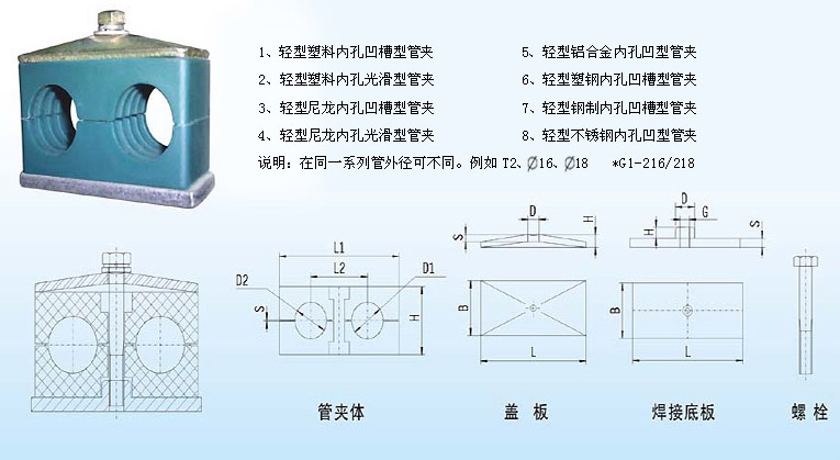 管夹体:PP/PA/AL /Q235/SS304/XS316